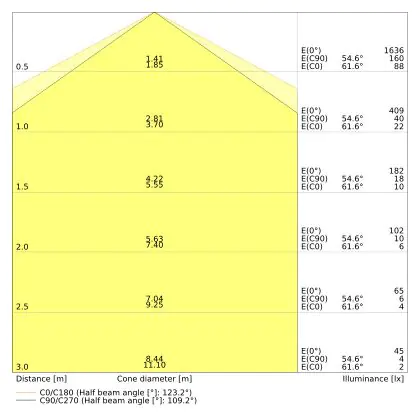 ![]() De kleurcode is een combinatie van de kleurweergave (CRI) en lichtkleur (Kelvin). Het eerste getal is de kleurweergave (1 = zeer slechte kleurweergave, 9 = maximale kleurechtheid). Het tweede en derde cijfer betreft de lichtkleur. Een lamp met kleurcode 830 heeft bijvoorbeeld een goede kleurweergave en straalt een warm wit licht uit (3000K), waar een lamp met de kleurcode 940 een uitstekende CRI heeft en een koel wit licht (4000K) uitstraalt. |