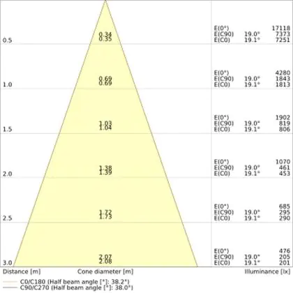 De gradenbundel geeft informatie over hoe breed het licht wordt uitgestraald. Dit zit tussen de 0 en 360 graden (D). Hoe kleiner de hoek, hoe specifieker de lichtbundel is. Over het algemeen is een smalle gradenbundel perfect voor sfeer- of accentverlichting, terwijl een brede gradenbundel ideaal is om grote oppervlaktes te verlichten.