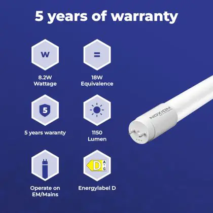 Noxion LED Buis T8 Avant Extreme (EM/Mains) High Output 8.2W 1150lm - 865 Daglicht | 60cm - Vervangt 18W