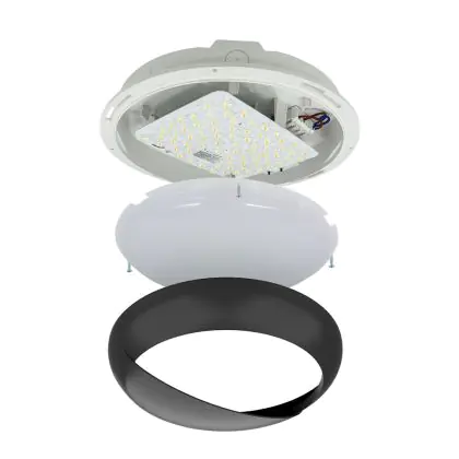 Noxion LED Bulkhead Pro V2 12/16/20W 2400lm - 830-840-865 CCT | 325mm - IP65 - Bewegings- en Lichtsensor - 3 Uur Noodverlichting + Ooglid Ring Zwart