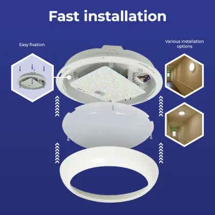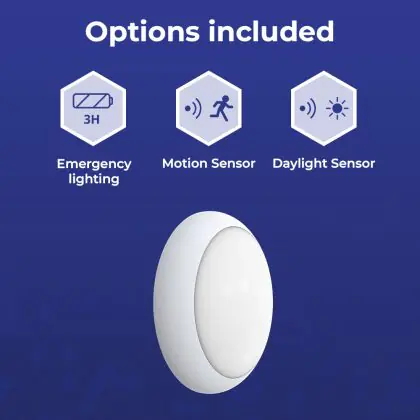 Noxion LED Bulkhead Pro V2 12/16/20W 2400lm - 830-840-865 CCT| 325mm - IP65 - Bewegings- en Lichtsensor - 3 Uur Noodverlichting + Ring Wit