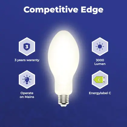 Noxion LED HID Ellipsvormig E27 18W 3000lm - 840 Koel Wit | Vervangt 50W