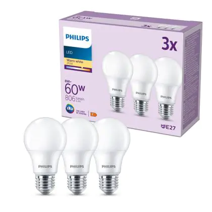 | Fabrikantnaam | Box 3 stuks - Philips LED Lamp Mat - 60 W - E27 - Warmwit licht | |